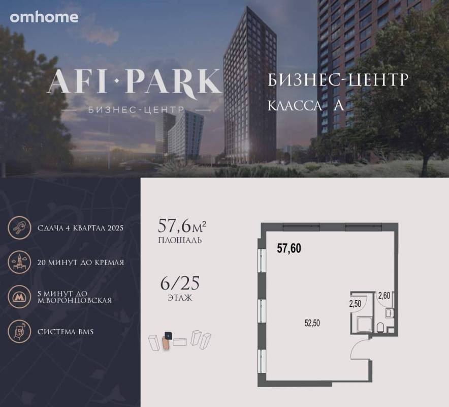Продается просторное коммерческое помещение общей площадью 57,6 м2 на 6 этаже в строящемся бизнес-центре AFI Park. 21-этажный бизнес-центр AFI Park – современный бизнес-центр класса A с мультифункциональной экосистемой для бизнеса, панорамным остеклением и эргономичным пространством станет завершающим этапом клубного квартала. На первом этаже здания – лобби с комфортной зоной ожидания, кофе-поинтами и банкоматами, ресторан и торговая зона. Со...
