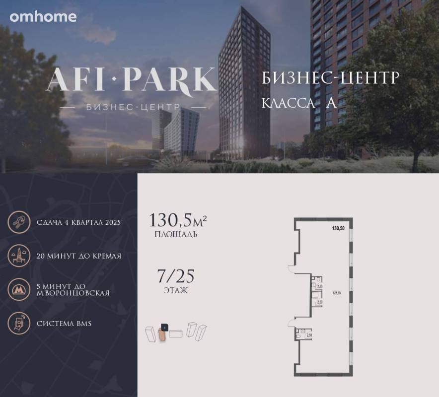 Продается просторное коммерческое помещение общей площадью 130,5 м2 на 7 этаже в строящемся бизнес-центре AFI Park. 21-этажный бизнес-центр AFI Park – современный бизнес-центр класса A с мультифункциональной экосистемой для бизнеса, панорамным остеклением и эргономичным пространством станет завершающим этапом клубного квартала. На первом этаже здания – лобби с комфортной зоной ожидания, кофе-поинтами и банкоматами, ресторан и торговая зона. Со...