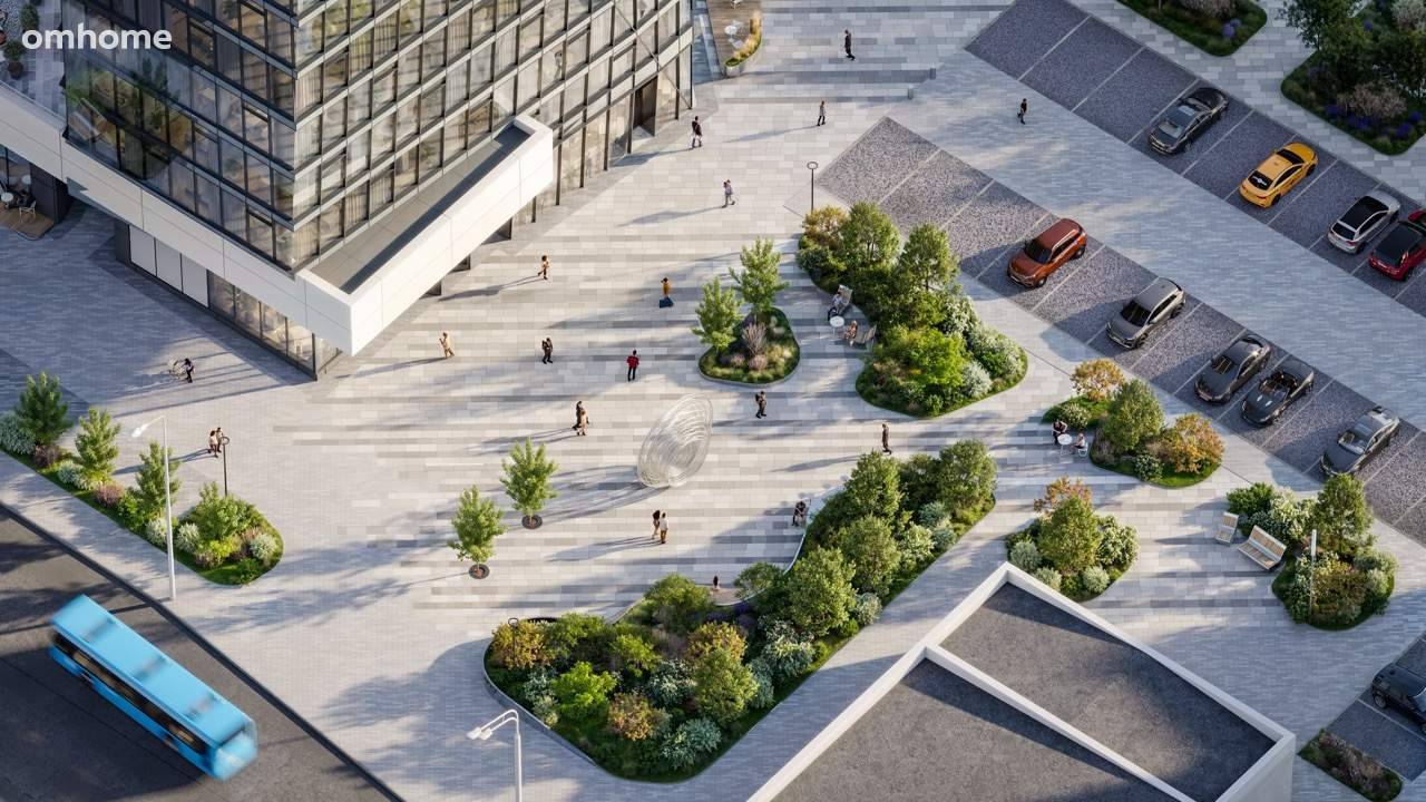 В центре – просторная встречающая площадь, рассчитанная на большой пешеходный поток. Пространство открытое, понятное: в нем легко ориентироваться и удобно назначать встречу у знакового арт-объекта.
