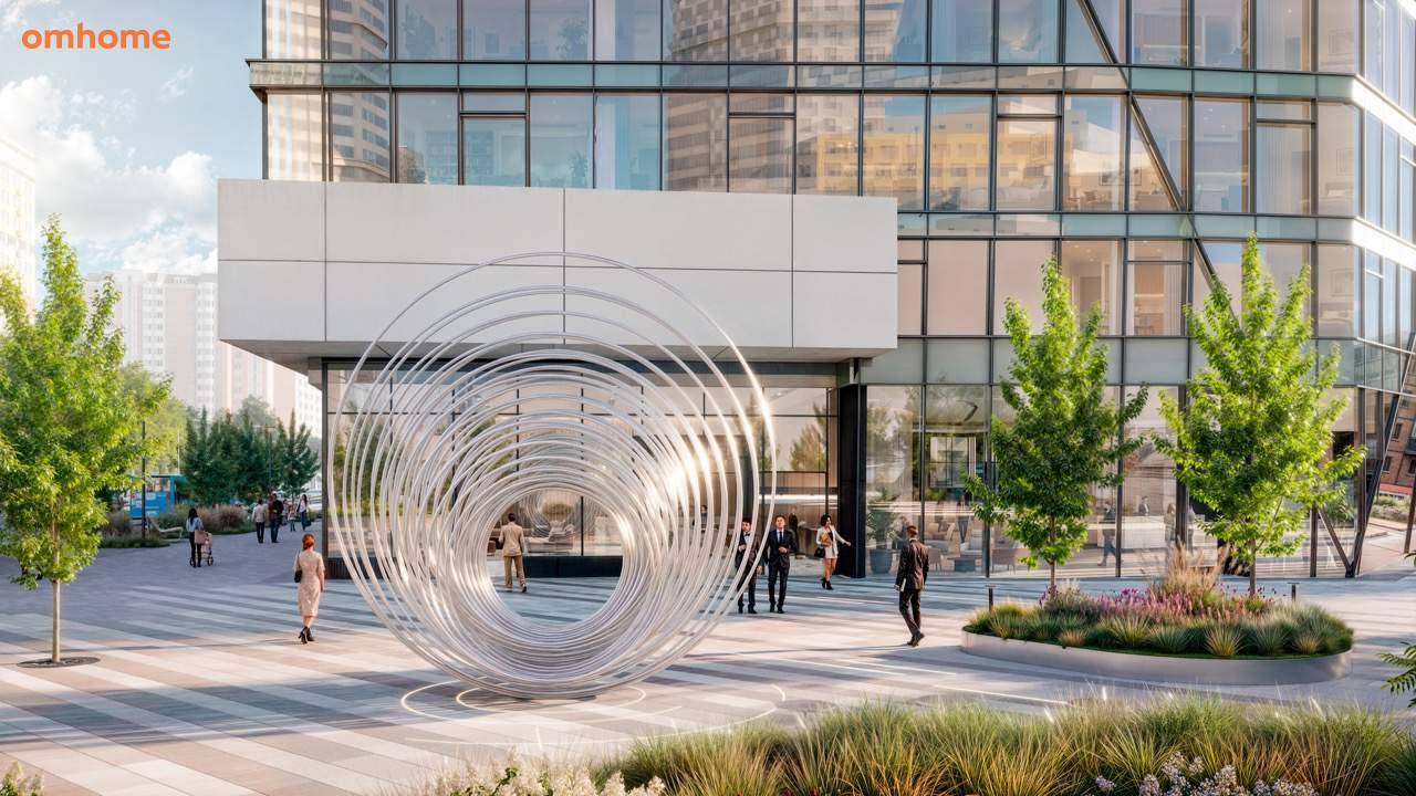 В центре – просторная встречающая площадь, рассчитанная на большой пешеходный поток. Пространство открытое, понятное: в нем легко ориентироваться и удобно назначать встречу у знакового арт-объекта.
