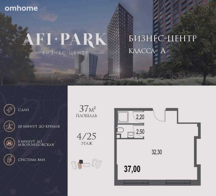 Продается просторное коммерческое помещение общей площадью 37 на 4 этаже в готовом бизнес-центре AFI Park. Строительство комплекса завершено. 21-этажный бизнес-центр AFI Park – современный бизнес-центр класса A с мультифункциональной экосистемой для бизнеса, панорамным остеклением и эргономичным пространством станет завершающим этапом клубного квартала. На первом этаже здания – лобби с комфортной зоной ожидания, кофе-поинтами и банкоматами, ресторан...