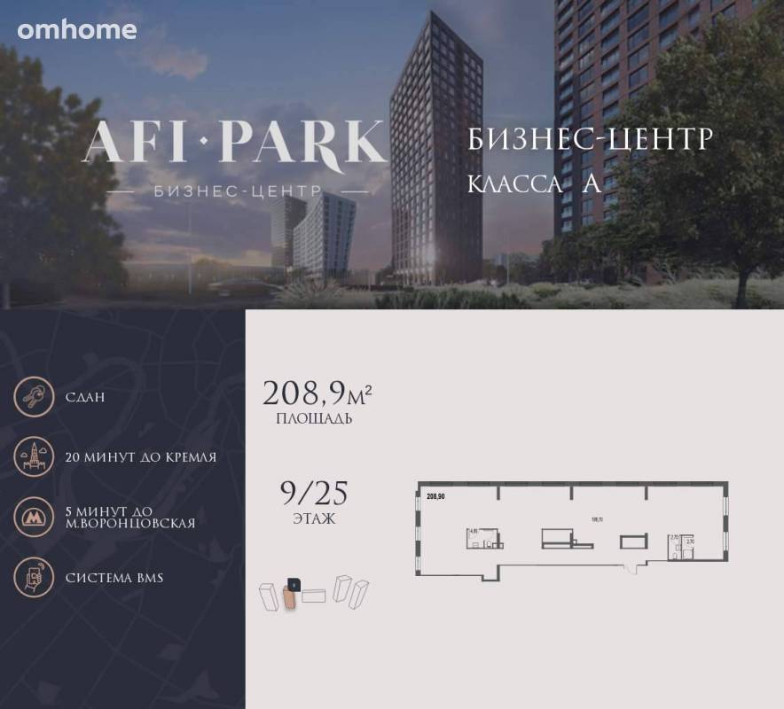Продается просторное коммерческое помещение общей площадью 208,9 на 9 этаже в готовом бизнес-центре AFI Park. Строительство комплекса завершено. 21-этажный бизнес-центр AFI Park – современный бизнес-центр класса A с мультифункциональной экосистемой для бизнеса, панорамным остеклением и эргономичным пространством станет завершающим этапом клубного квартала. На первом этаже здания – лобби с комфортной зоной ожидания, кофе-поинтами и банкоматами...