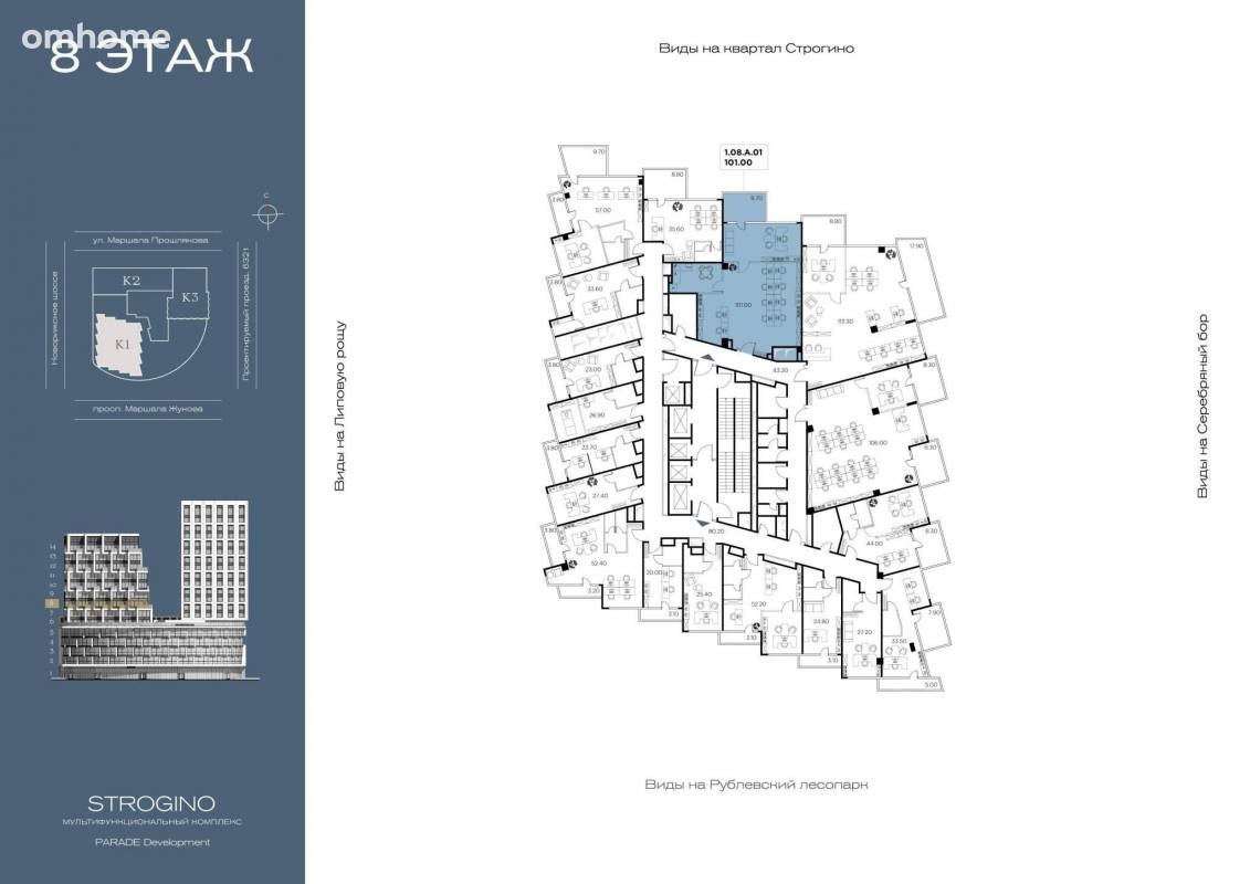 В продаже от застройщика комфортабельный Private-офис площадью 109.7 м на 8 этаже в премиальном бизнес-центре Сити Строгино. Срок сдачи – 2028 год.
