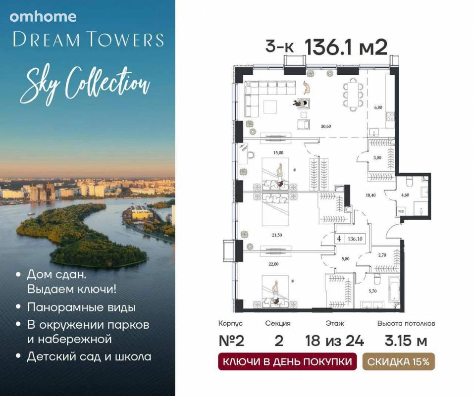 Продажа 3-комнатной квартиры 136,1 м²