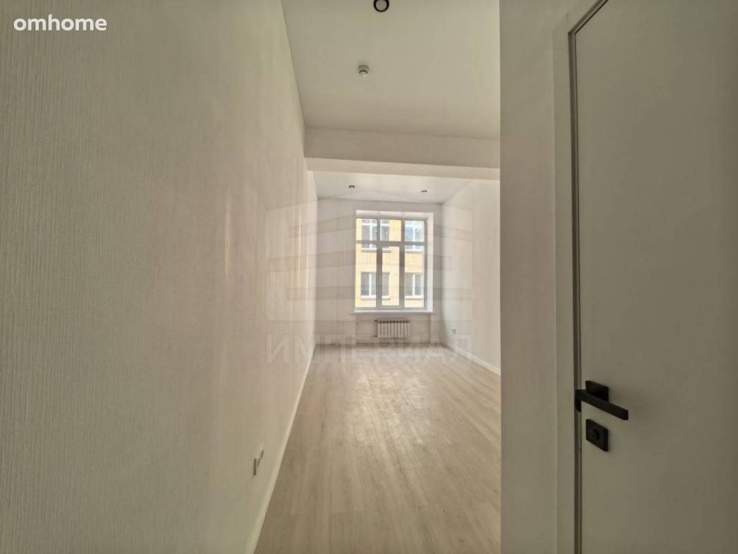 На стенах поклеены обои под покраску, на полу постелен ламинат с плинтусами и откосами. Есть вытяжная вентиляция в санузле и на кухне, выходы хв/гв, место под раковину на кухне. Кроме того, в помещениях уже есть выключатели освещения, розетки для бытовой техники и роутера, а также сделаны закладные для оптоволокна для интернета.