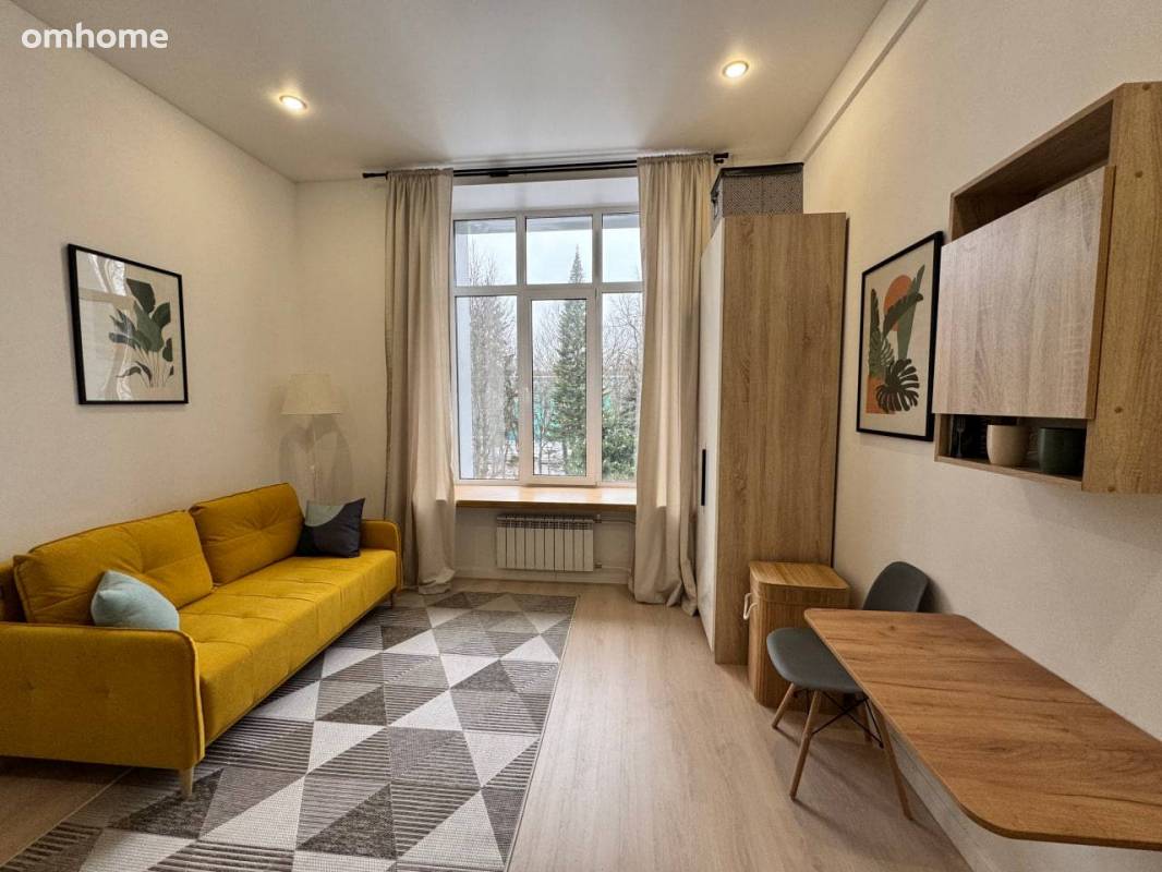 Высота потолков 3,5 м•Покрытие пола – ламинат•Вид во двор