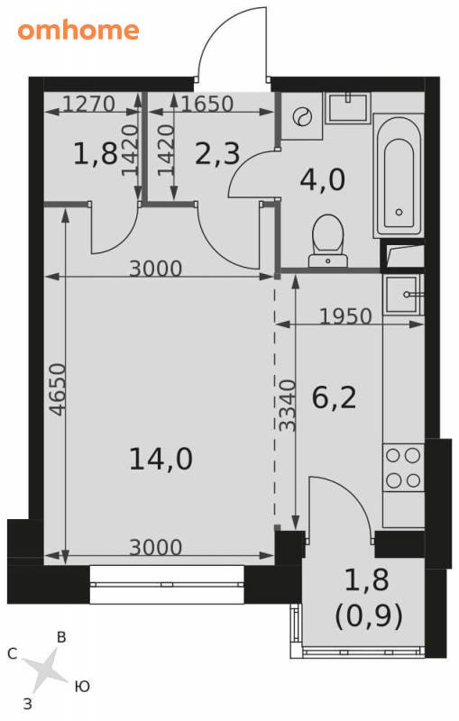 14 м²