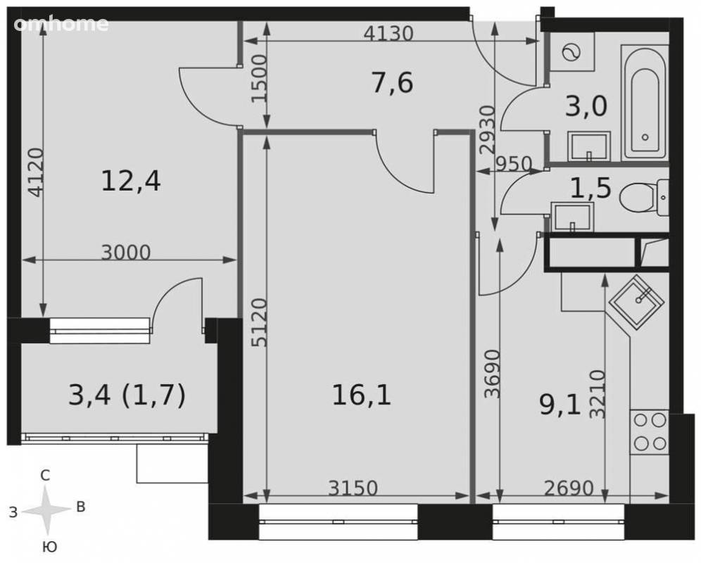 Продажа 2-комнатной квартиры 51,4 м²