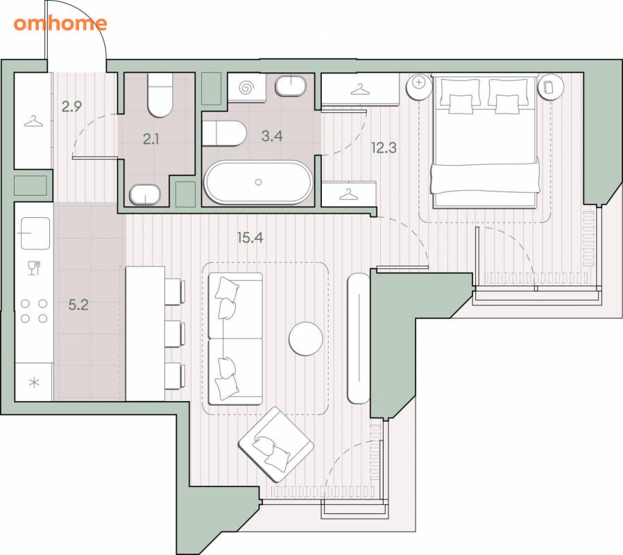 Жилая площадь 27.7 м2, кухня 5.2 м2, предчистовая отделка, комнаты изолированные.