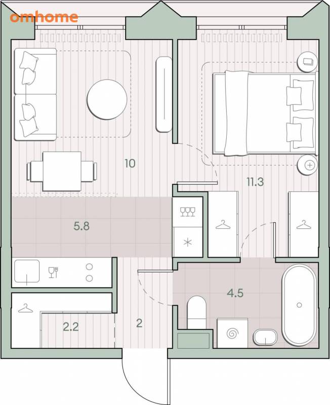 Жилая площадь 21.3 м2, кухня 5.8 м2, квартира без отделки, комнаты изолированные.