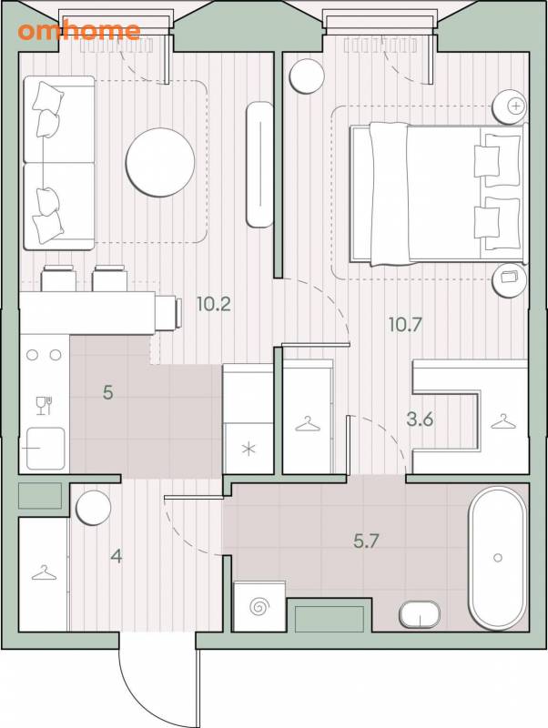Жилая площадь 20.9 м2, кухня 5 м2, предчистовая отделка, комнаты изолированные.