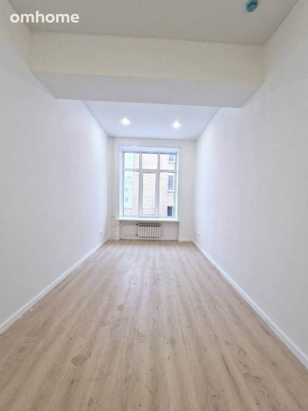 На стенах поклеены обои под покраску, на полу постелен ламинат с плинтусами и откосами. Есть вытяжная вентиляция в санузле и на кухне, выходы хв/гв, место под раковину на кухне. Кроме того, в помещениях уже есть выключатели освещения, розетки для бытовой техники и роутера, а также сделаны закладные для оптоволокна для интернета.