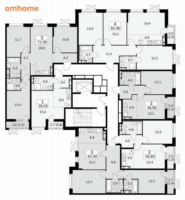 39,9 м²