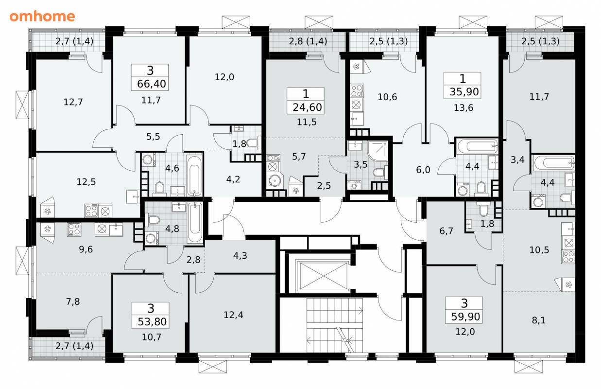 66,4 м²