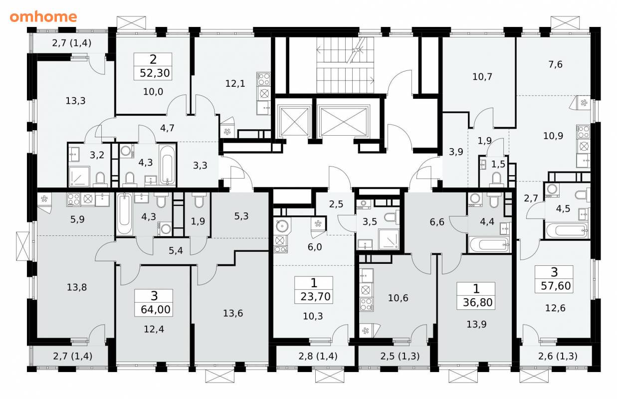57,6 м²