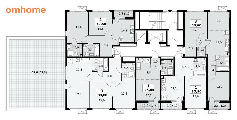 88,8 м²