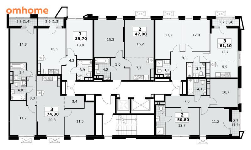 Продажа 2-комнатной квартиры 50,8 м²