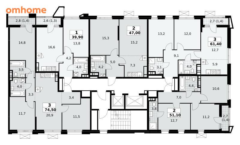 Продажа 2-комнатной квартиры 51,1 м²