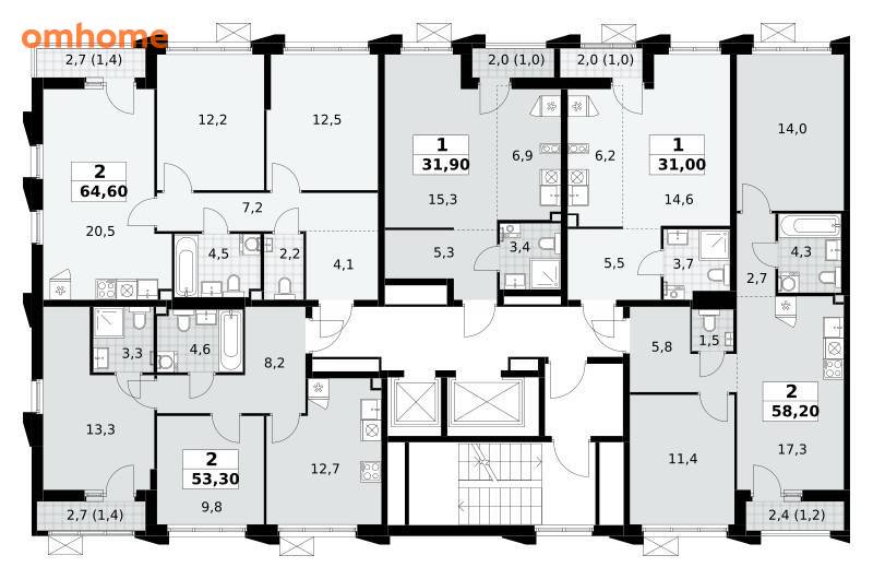 Продажа 2-комнатной квартиры 64,6 м²