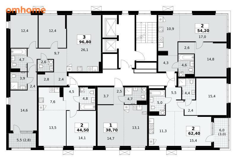 96,8 м²