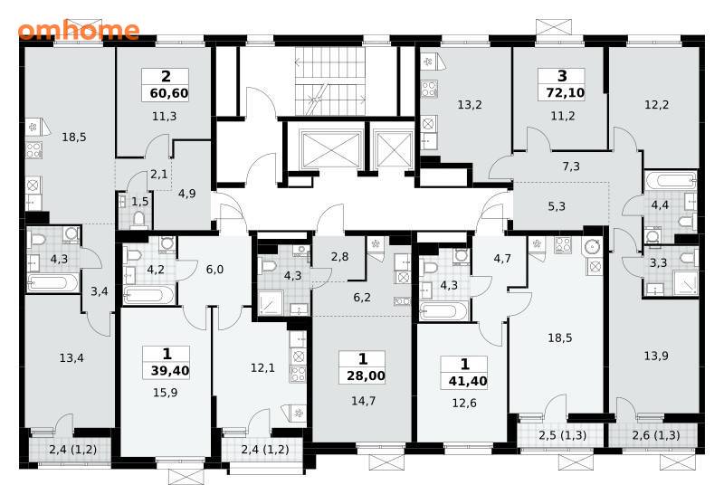 60,6 м²