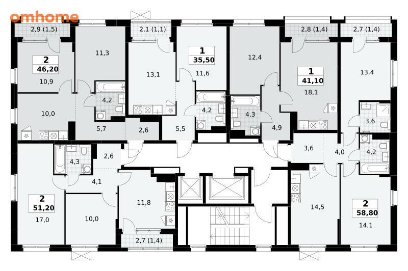 41,1 м²