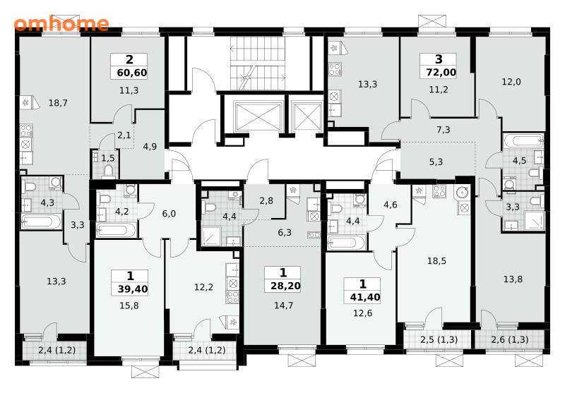 Продажа 2-комнатной квартиры 60,6 м²