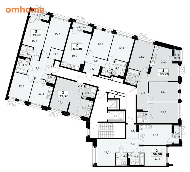 Продажа 2-комнатной квартиры 59,5 м²