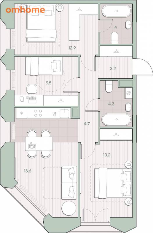 Подземная парковка. Инфраструктура: детские площадки, спортивные площадки.