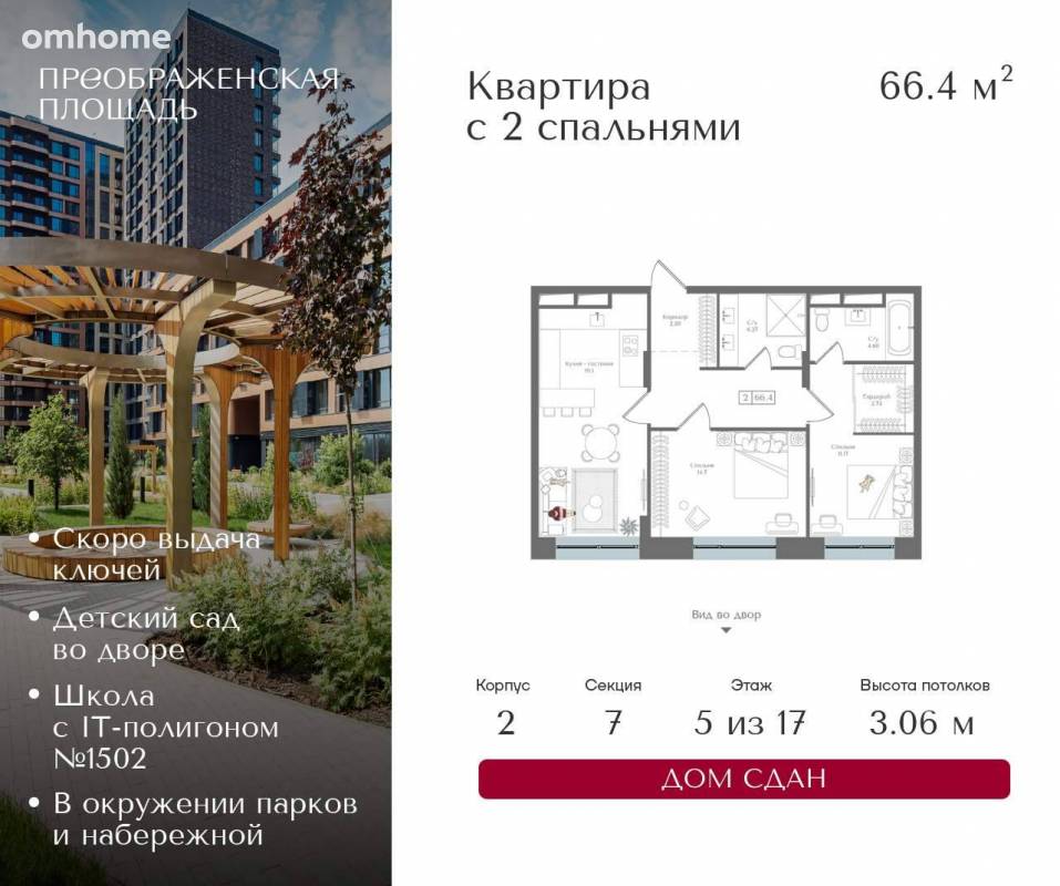 Продажа 2-комнатной квартиры 66,4 м²