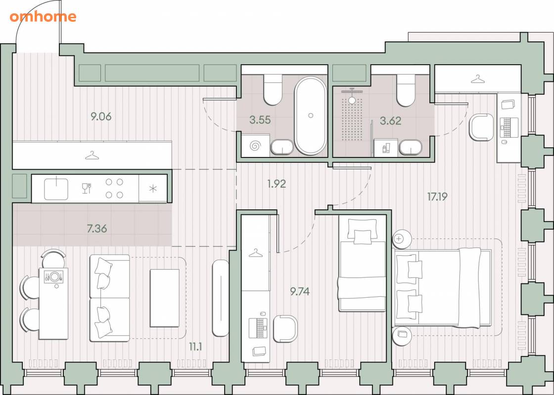 Продается 2-комн. квартира, площадью 63.54 м2 в монолитной новостройке в 12 мин. пешком от м. Кунцевская, район города – Кунцево. Возможен вариант покупки с использованием ипотечных средств, есть рассрочка.