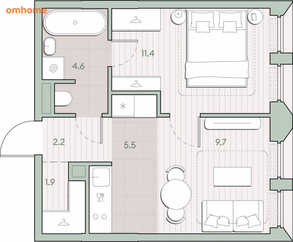 Жилая площадь 21.1 м2, предчистовая отделка, комнаты изолированные.