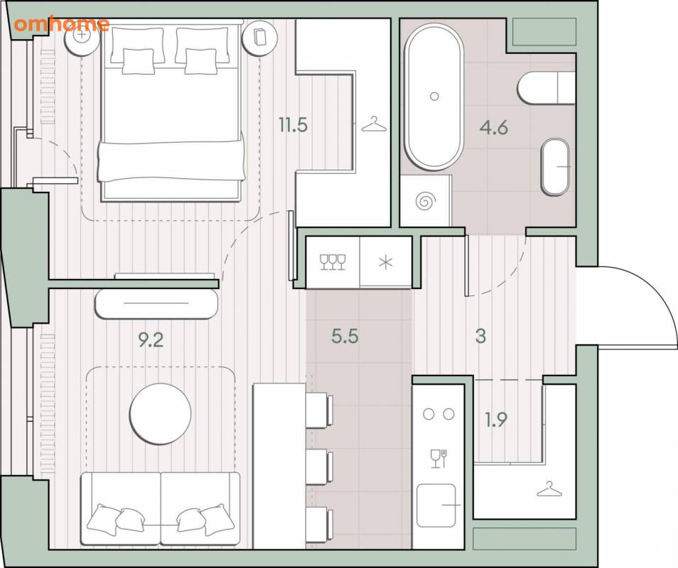Жилая площадь 20.7 м2, кухня 5.5 м2, квартира без отделки, комнаты изолированные.
