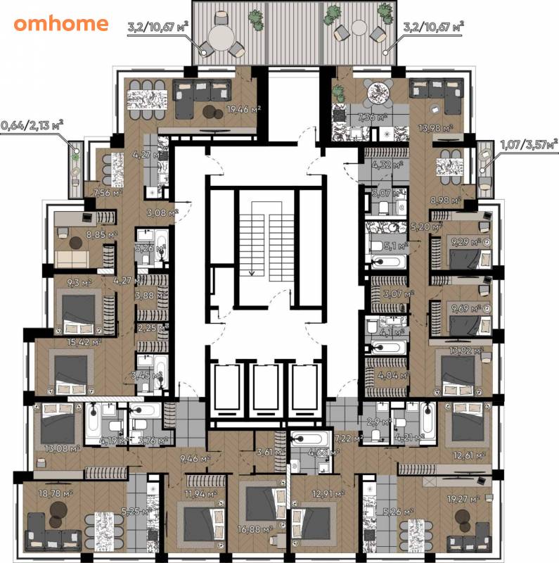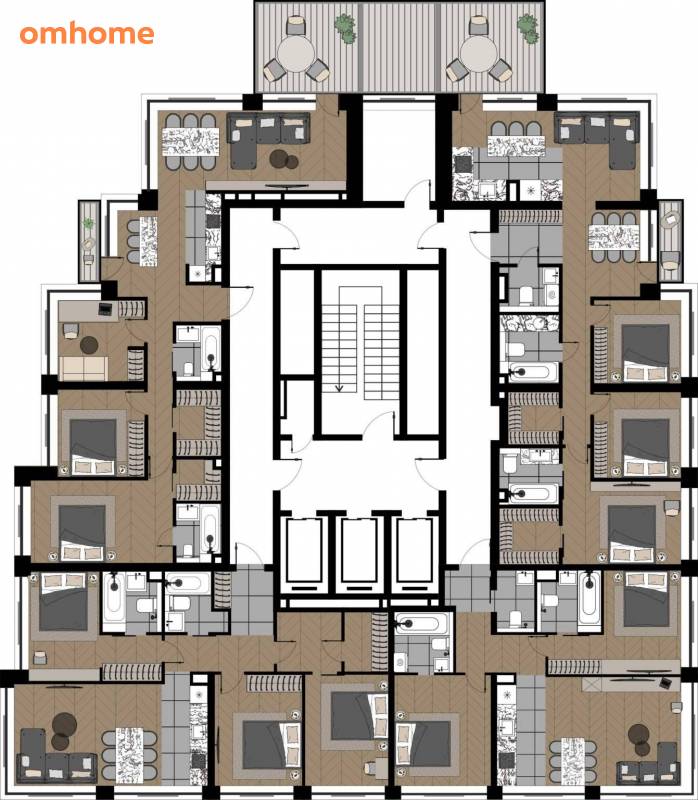 Квартиры с просторными террасами – выход на свежий воздух прямо из дома, гармония природы и городской роскоши.