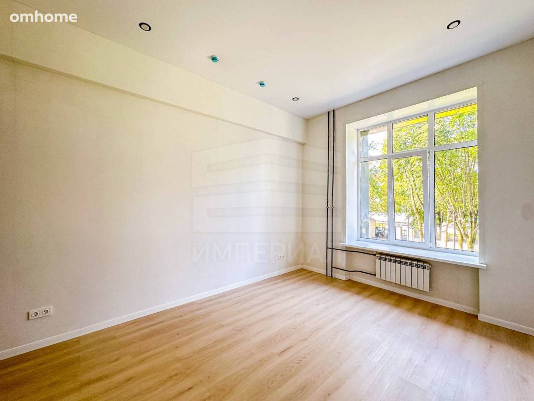 На стенах поклеены обои под покраску, на полу постелен ламинат с плинтусами и откосами. Есть вытяжная вентиляция в санузле и на кухне, выходы хв/гв, место под раковину на кухне. Кроме того, в помещениях уже есть выключатели освещения, розетки для бытовой техники и роутера, а также сделаны закладные для оптоволокна для интернета.