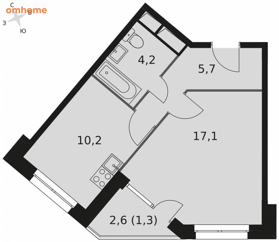Продажа 1-комнатной квартиры 38,4 м²