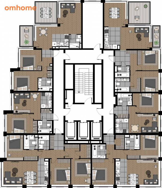 Квартиры с просторными террасами – выход на свежий воздух прямо из дома, гармония природы и городской роскоши.