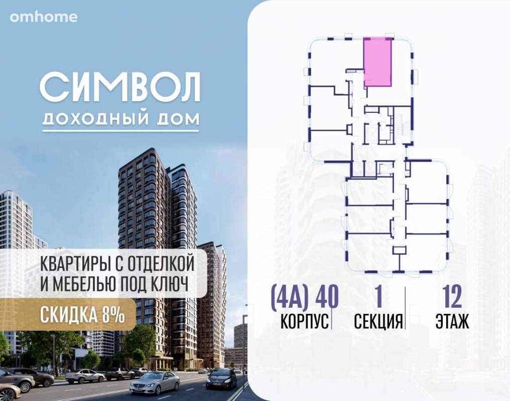 Квартира находится в жилом комплексе «Символ»