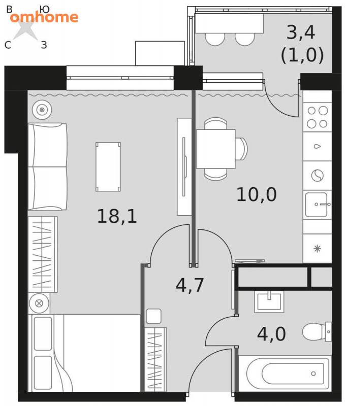 1-комнатная квартира