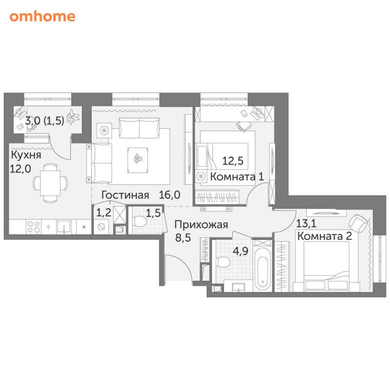 3-комнатная квартира