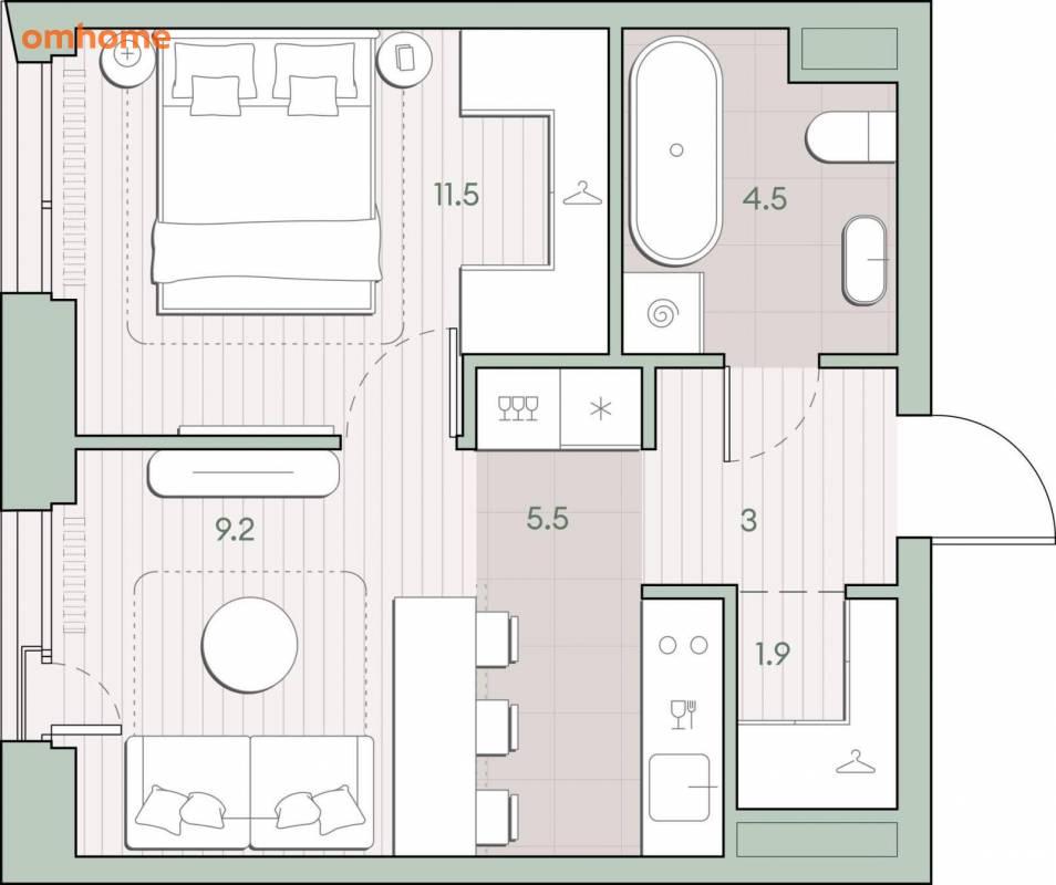 Жилая площадь 20.7 м2, кухня 5.5 м2, квартира без отделки, комнаты изолированные.
