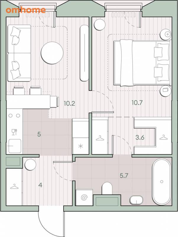 Жилая площадь 20.9 м2, кухня 5 м2, предчистовая отделка, комнаты изолированные.