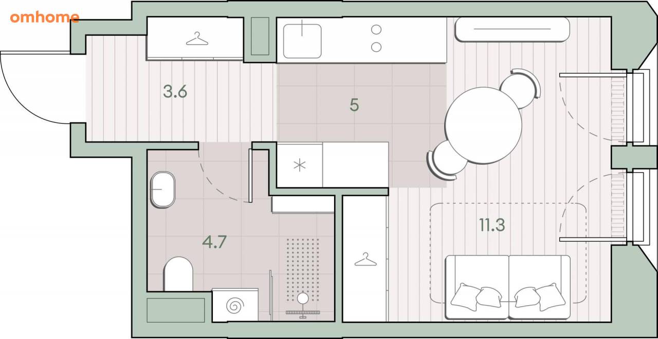 Жилая площадь 11.3 м2, кухня 5 м2, предчистовая отделка, комнаты изолированные.