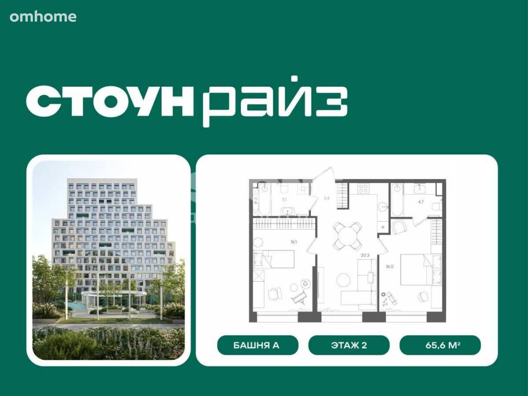 Продажа 2-комнатной квартиры 65,6 м²