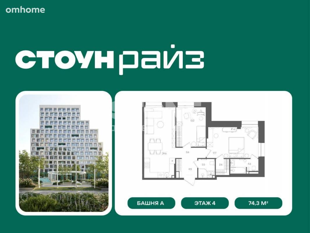 Продажа 2-комнатной квартиры 74,3 м²
