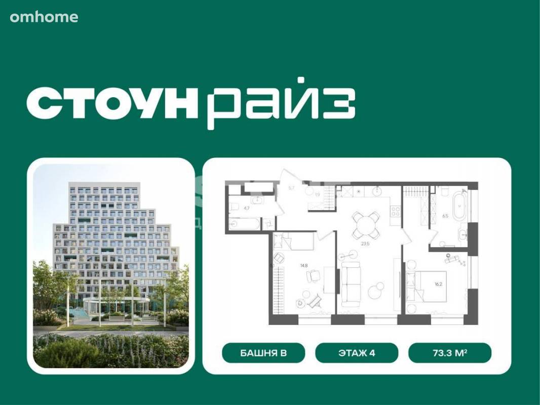 Продажа 2-комнатной квартиры 73,3 м²