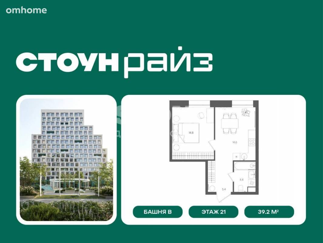 Продажа 1-комнатной квартиры 39,2 м²