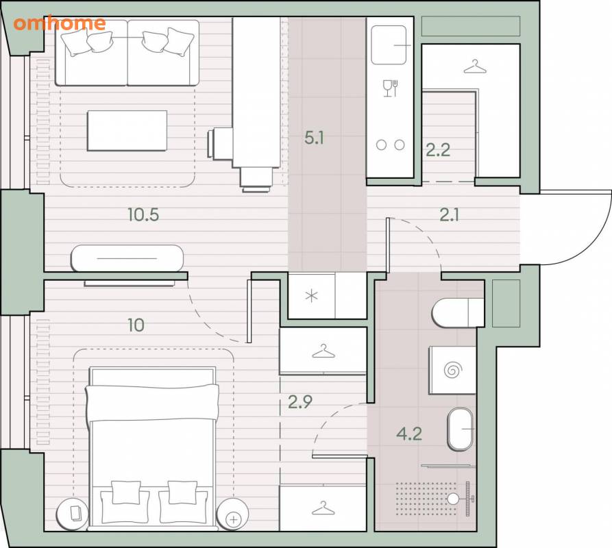 Жилая площадь 20.5 м2, кухня 5.1 м2, предчистовая отделка, комнаты изолированные.