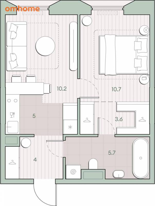 Жилая площадь 20.9 м2, кухня 5 м2, предчистовая отделка, комнаты изолированные.