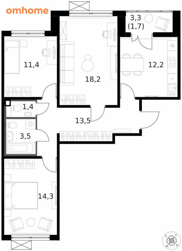 3-комнатная квартира
